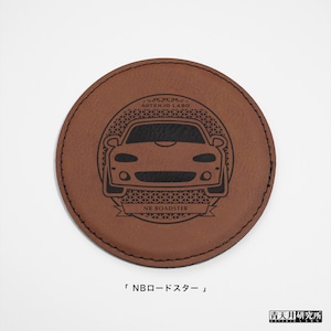 ご自宅テーブルや仕事場のデスクなど、普段からロードスターの愛らしい表情をお楽しみいただけるレザコースターです。
