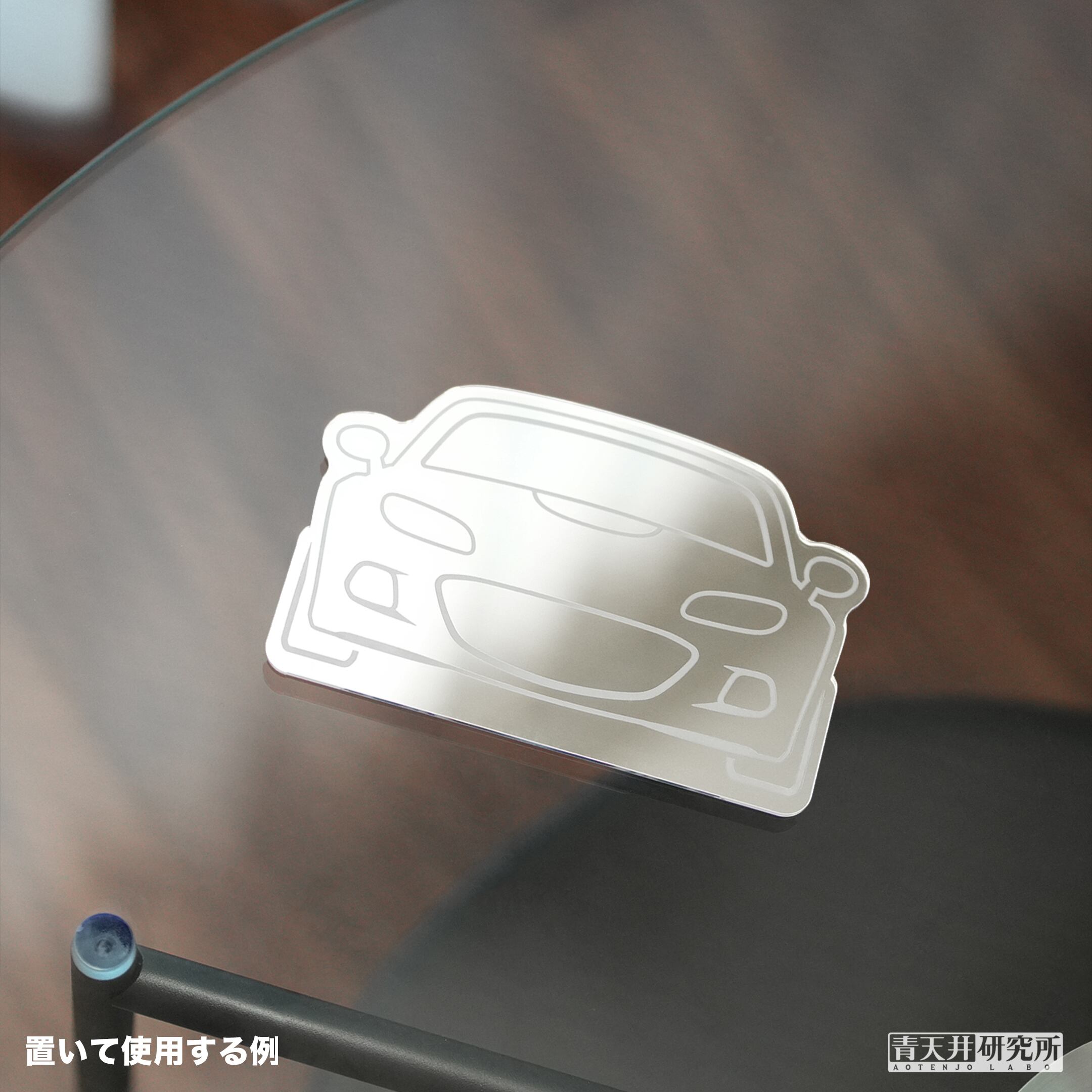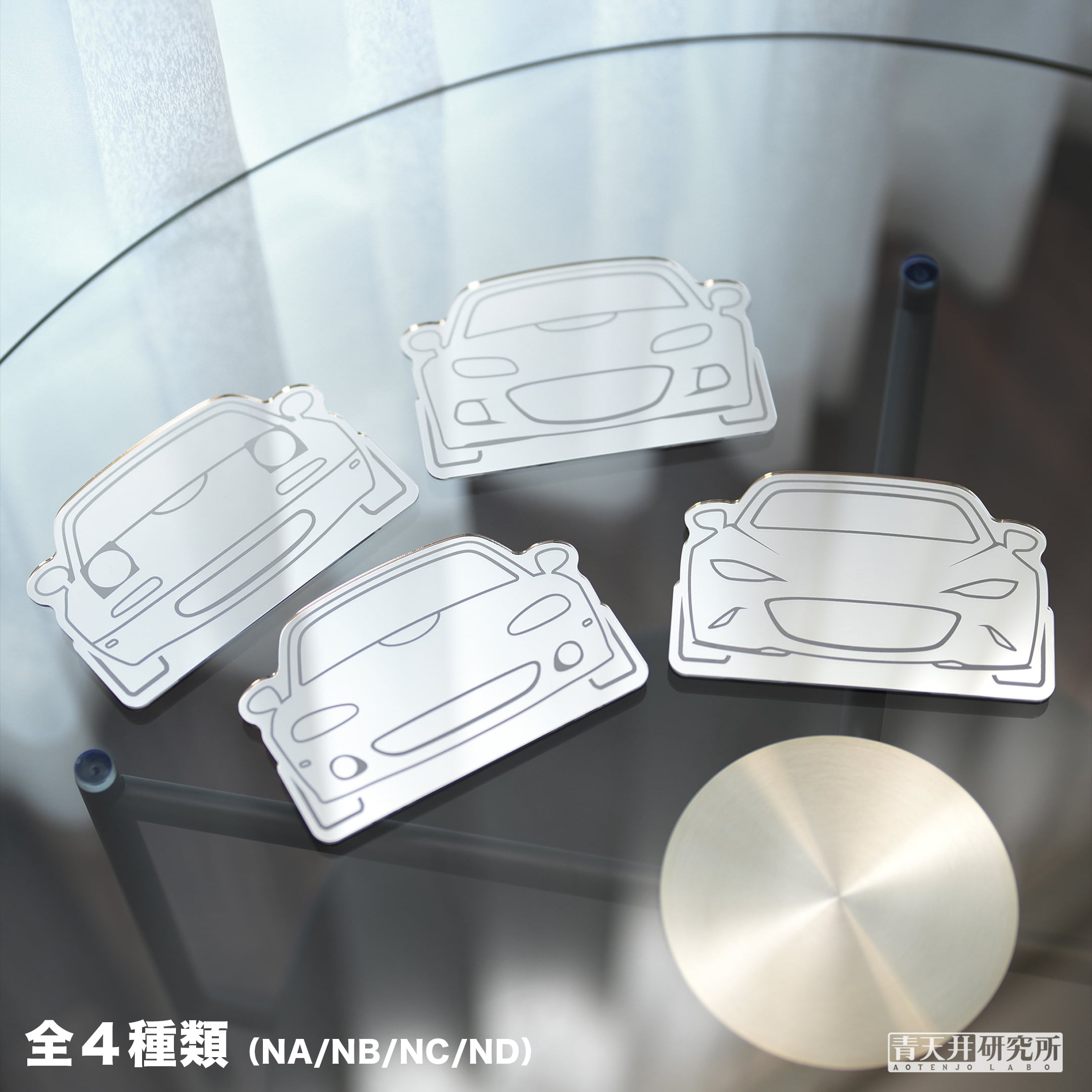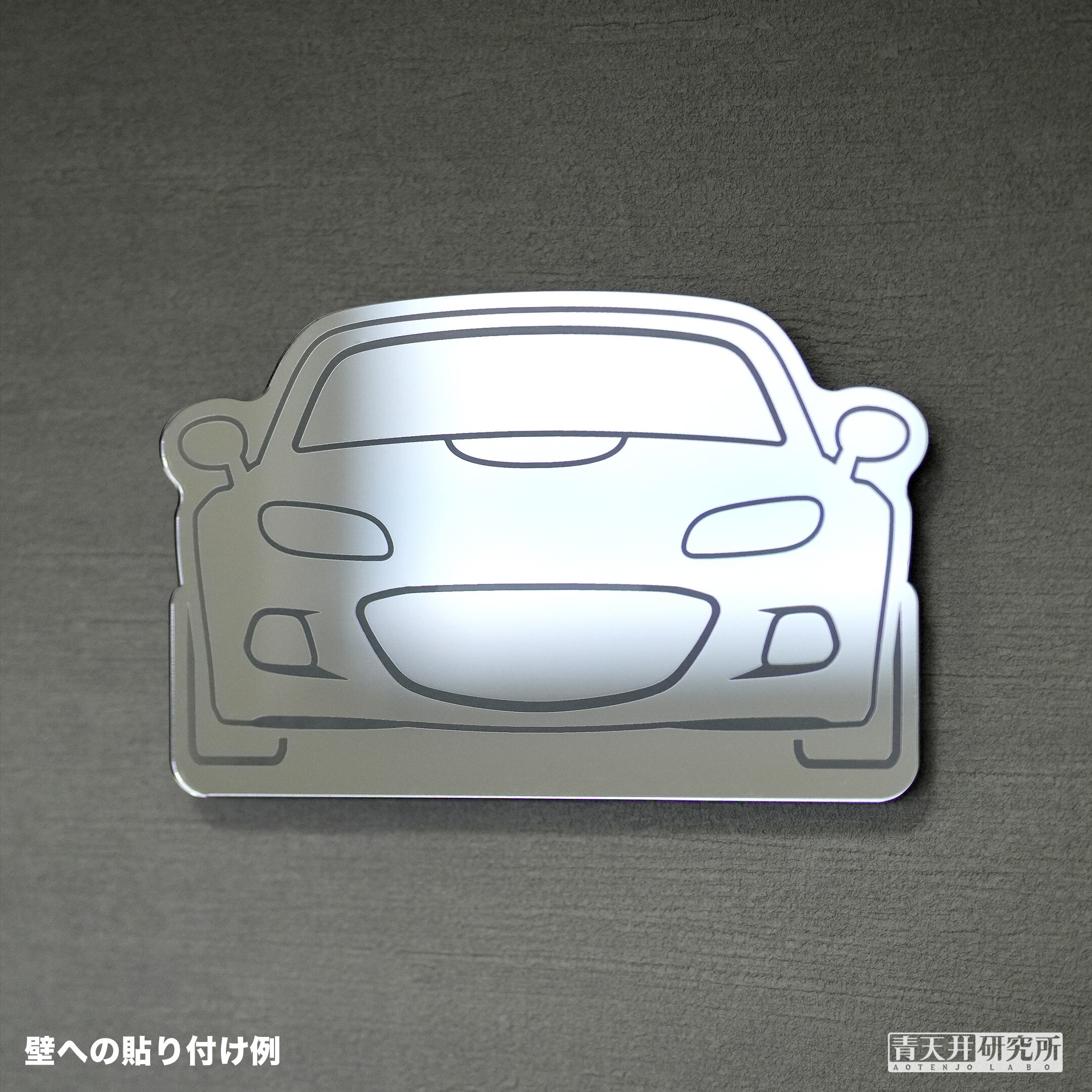 ロードスターのイラストはアクリルミラーキーホルダーのデザインをベースに、鏡の面積をできるだけ多く残せるように細く調整した専用のデザインです。