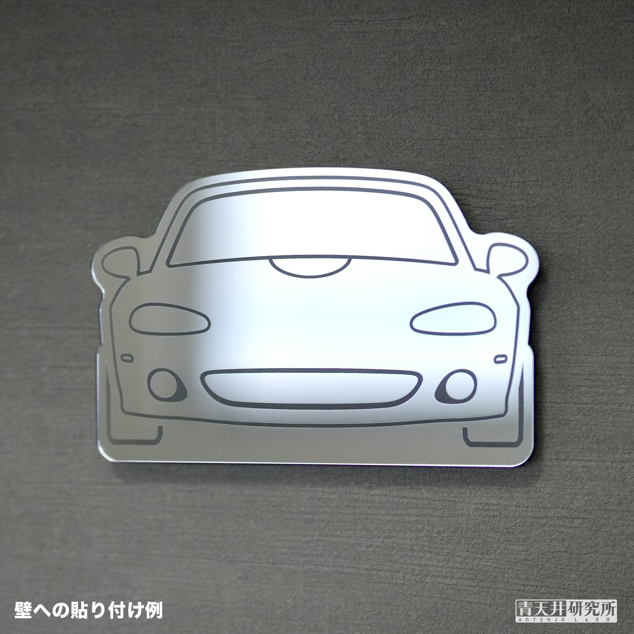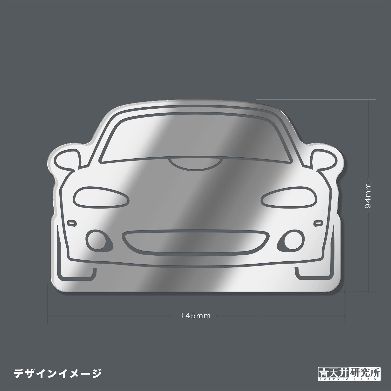 ロードスターのイラストはアクリルミラーキーホルダーのデザインをベースに、鏡の面積をできるだけ多く残せるように細く調整した専用のデザインです。