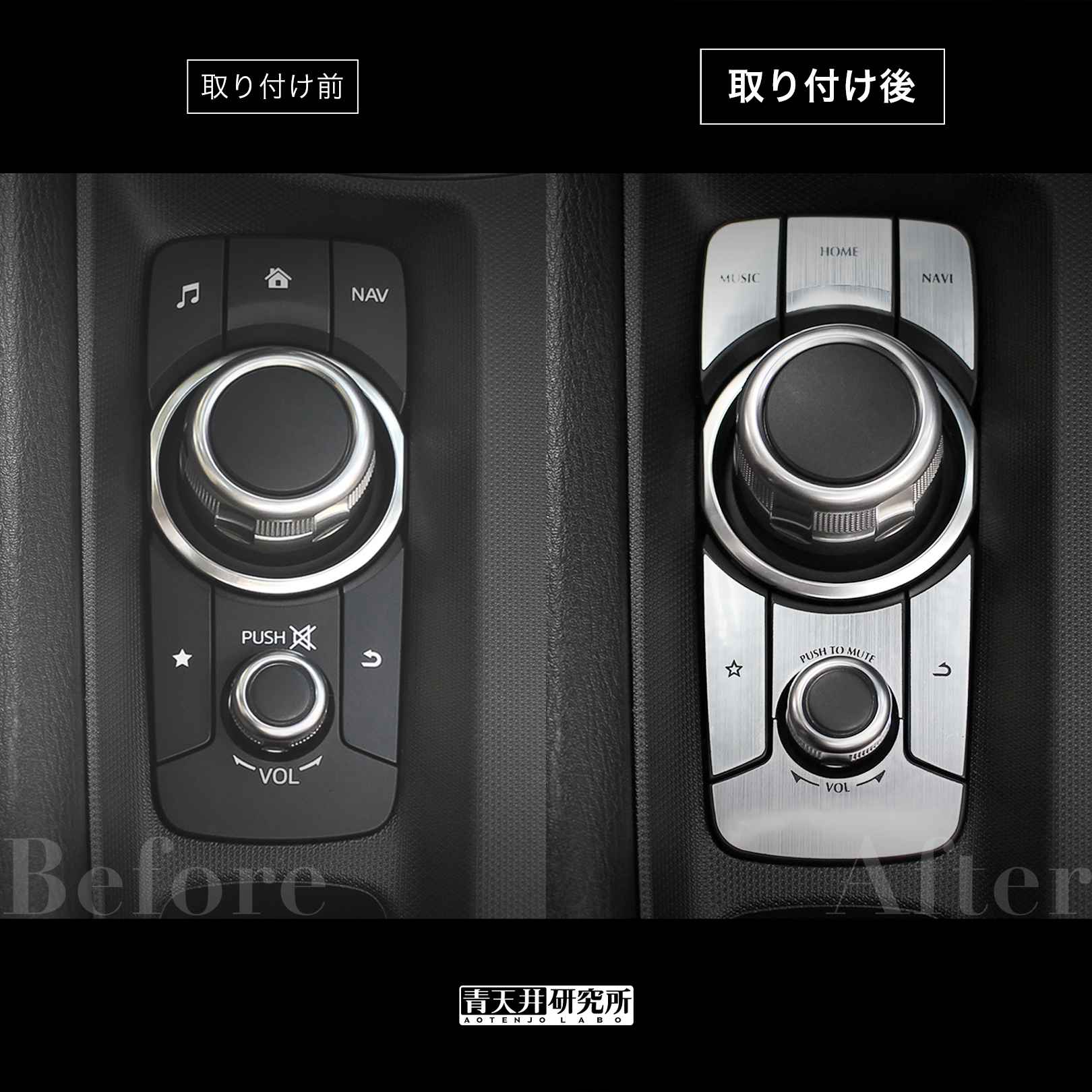 マツダ ロードスター(ND系)のマツダコネクト(ナビやオーディオ)を操作するコントローラー部のスイッチに貼り付ける極薄アルミヘアライン調のステッカーセットです。